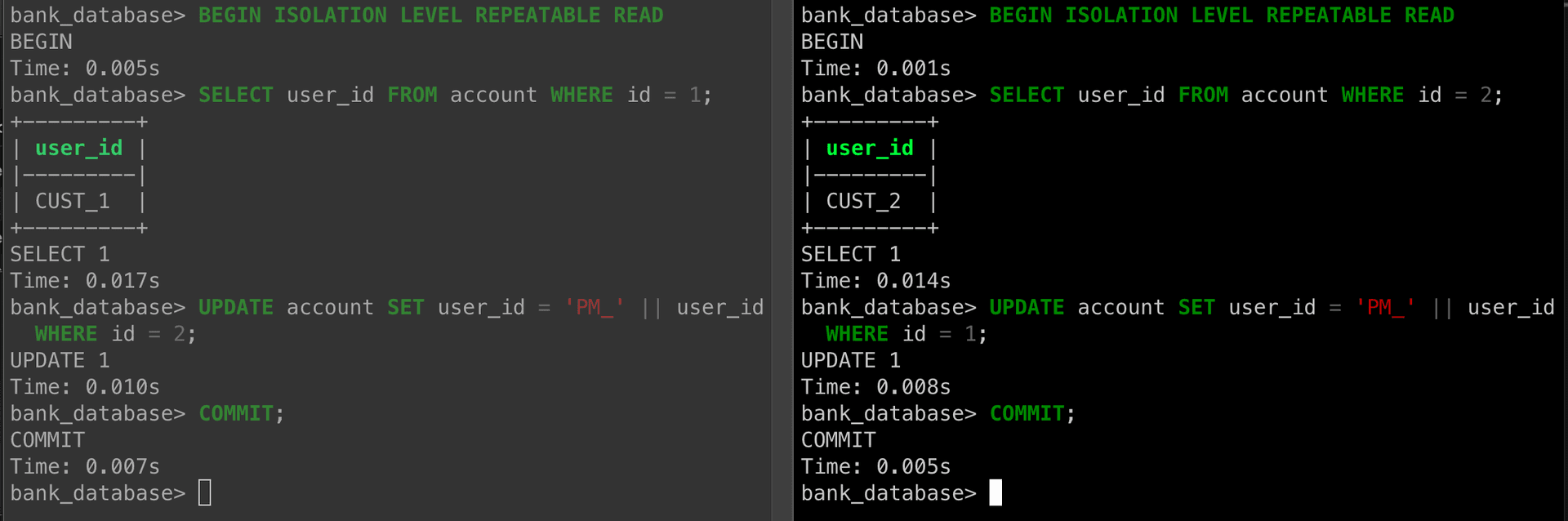 user_idto have prefixPM_. - Both transactions commit successfully.